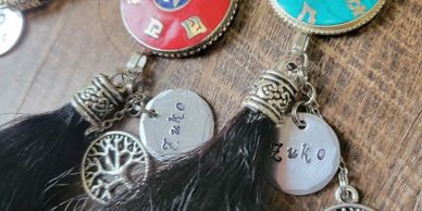 A challenge to say the least, as the strands were extremely thick and coarse. I used six strands of hair per bracelet. Each was hand braided and tied, accented with a loop closure, and bead finish of the client's choice colors.